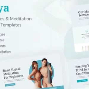 All that you need to create a professional website for Yoga, Pilates, Meditation, Spa, Wellness, Sports & Health Websites, Personal Coach and any other sports businesses. Main Features: 10 Elementor Templates 1 Click Installation True no-code customization with drag and drop visual builder Customize fonts and colors in one place or fine-tune on individual elements Modern, professional design Fast-loading Works with most Elementor themes. Kit Includes: Home 1 Template Home 2 Template Home 3 Template Home 4 Template About Us Contact Us Page Services Pricing Events Healing Fonts: Nunito Noto Serif