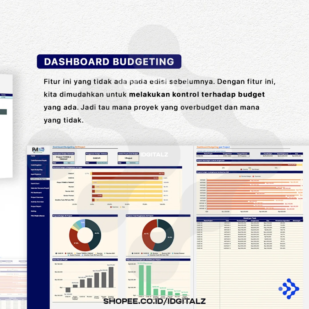 Dashboard Budgeting memudahkan kontrol anggaran setiap proyek, mengetahui mana proyek yang overbudget dan mana yang masih aman, sehingga membantu pengambilan keputusan lebih cepat.