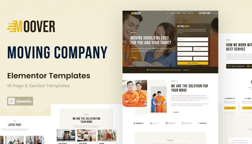 Moover is an Elementor website template kit designed and developed specifically to help you create business website for your moving company. When you buy Moover you will get 16 pre-defined page & section templates. Moover Elementor template kit has been optimized for use with the free Hello Elementor theme but may be used with most themes that support Elementor.